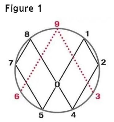 In addition to the 1-2-4-8-7-5 loop, there are two other key numbers in vortex math: 3 and 6, which do not appear in the main doubling pattern. Instead, they form a separate oscillation between themselves: 3 and 6, back and forth. These numbers are said to represent a higher dimensional energy or spiritual conduit, often considered to symbolize the invisible spiritual realm or the axis of the torus. Rodin refers to the number 9 as the most sacred of all—it does not participate in the 1-2-4-8-7-5 loop or the 3-6 pattern. Rather, the 9 represents the “control field” or the divine “ether” energy that governs the rest. In his framework, 9 is the singularity, the point of stillness, the observer, or source consciousness that holds the matrix of energy in balance.
